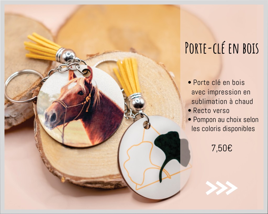 Les porte-clés en bois, sous-verres et mugs sont réalisés grâce à un processus de sublimation à chaud qui assure une impression haute qualité !